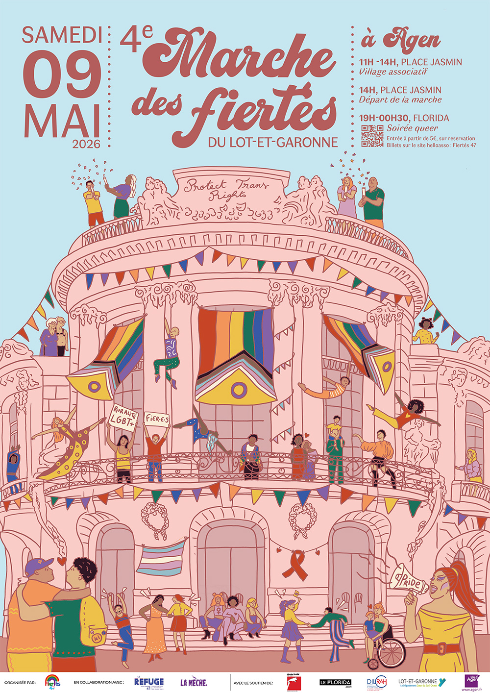 La 4è Marche des fiertés de Lot-et-Garonne aura lieu le samedi 9 mai 2026 à Agen.