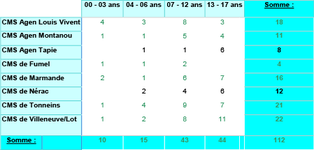 A ce jour, 18 situations de PEAD sont en attente et se répartissent comme suit : 9 sur le secteur de Villeneuve sur Lot, 4 sur le secteur du Fumel, 2 sur le secteur de Marmande, 2 sur le secteur d’Agen-Montanou et 1 sur le secteur de Nérac.