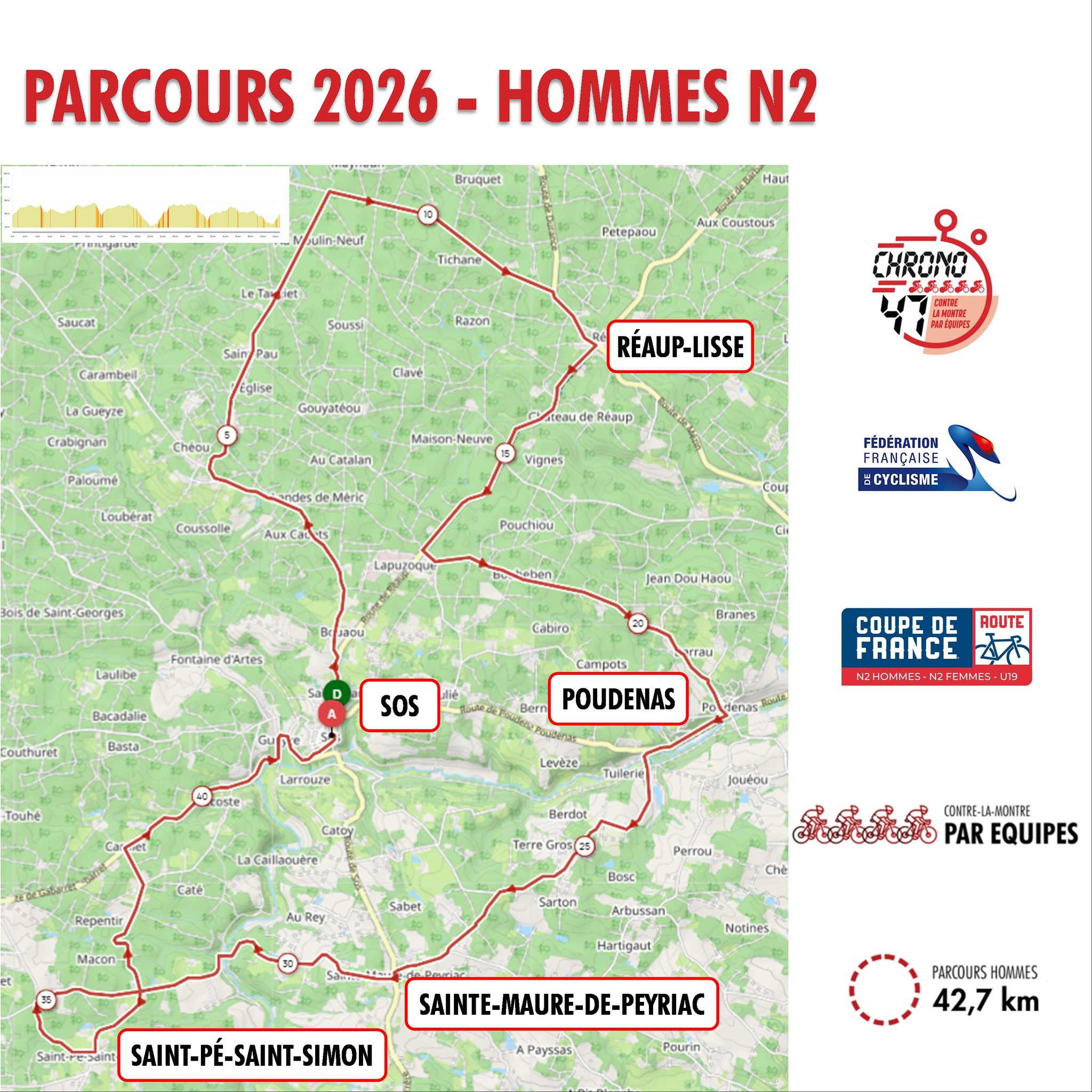 Découvrez les parcours qui attendent les concurrents et concurrentes de ce Chrono 47 2026, qui s'élancera de Sos le 1er mai :