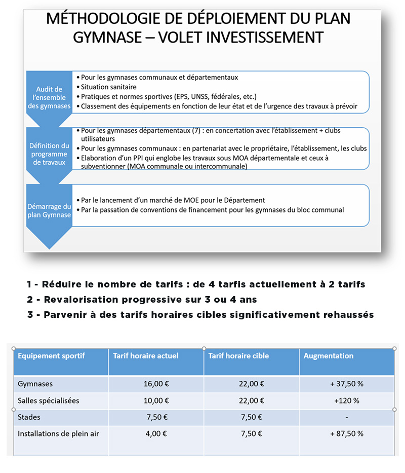 - de revaloriser les conditions d’occupation par les collèges (heures d’utilisation des équipements communaux, prise en charge des transports pour régler certaines situations).