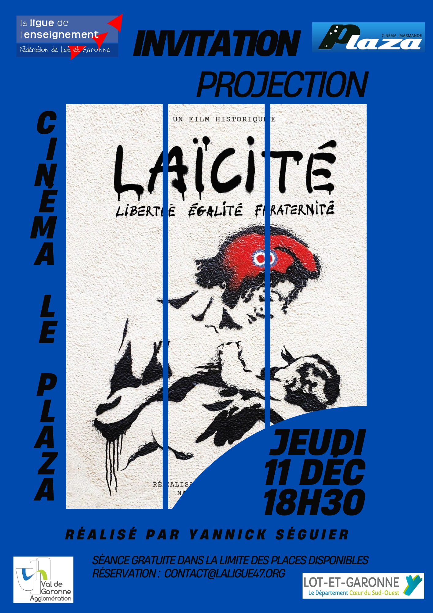 - 11 décembre 2025 à 18h30 au Cinéma le Plaza à Marmande : Projection du film Laïcité, Liberté, Égalité, Fraternité (png - 2,14 mo) de Yannick Séguier (je vous ferais passer l’invitation officielle demain).