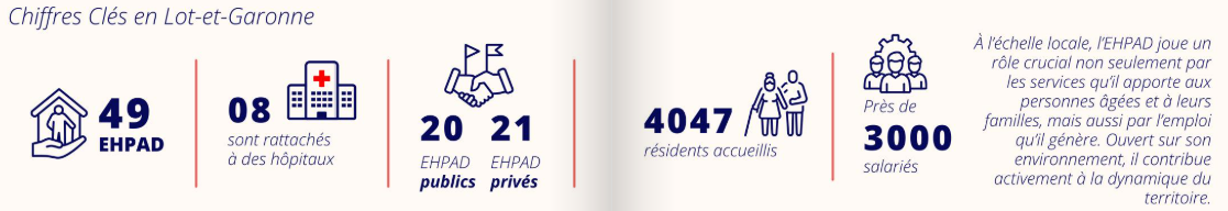 En Lot-et-Garonne, le secteur s’appuie sur 28 EHPAD publics autonomes ou rattachés à un établissement public hospitalier, offrant 2 591 places et mobilisant environ 2 000 professionnels. Ces femmes et ces hommes – soignants, animateurs, cuisiniers, agents techniques, personnels administratifs, directeurs et directrices – assurent au quotidien un accompagnement de qualité et un véritable projet de vie pour chaque résident.