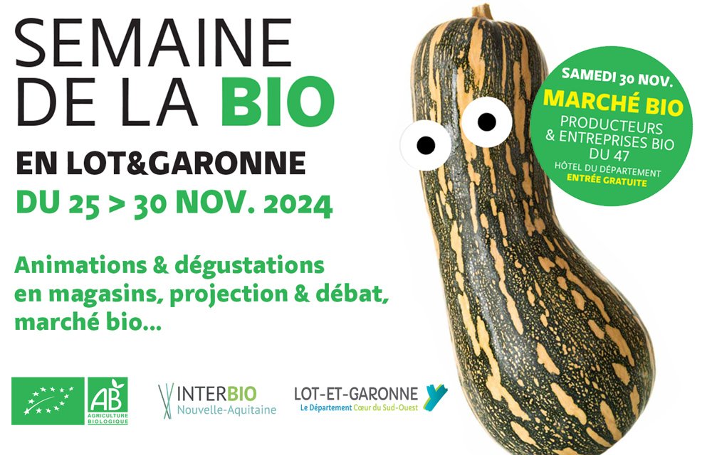 Du 25 au 30 novembre 2024, la bio est à l’honneur dans votre département. Co-organisée par le Conseil Départemental de Lot-et-Garonne et INTERBIO Nouvelle-Aquitaine, la Semaine de la bio revient pour une 3e édition gourmande et festive.