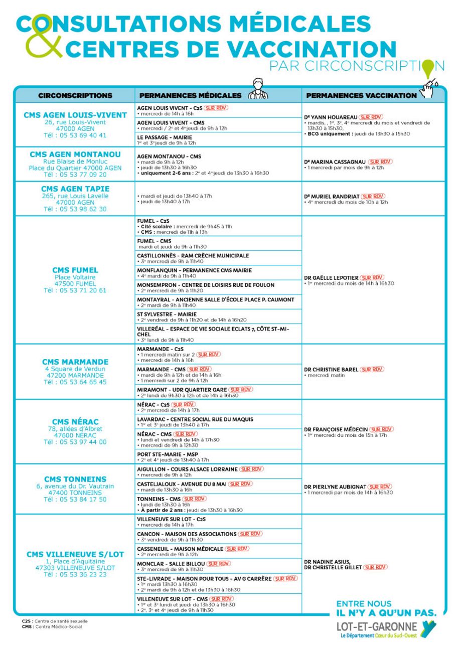 - Le Centre départemental de vaccination (CDV) pour les enfants à partir de 6 ans, les ados et les adultes