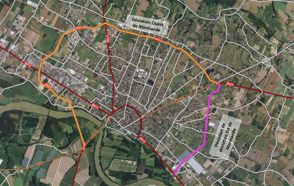 Le Conseil départemental de Lot-et-Garonne envisage aujourd’hui de compléter la déviation Ouest de Marmande, par la section manquante, côté Est, entre les routes départementales 813 et 933. Ce projet fait partie du plan de modernisation du réseau routier 2010-2025 du Département de Lot-et-Garonne. Le coût de l’opération est évalué à 24,3 millions d’euros TTC comprenant les études, les travaux, et l’achat du foncier.