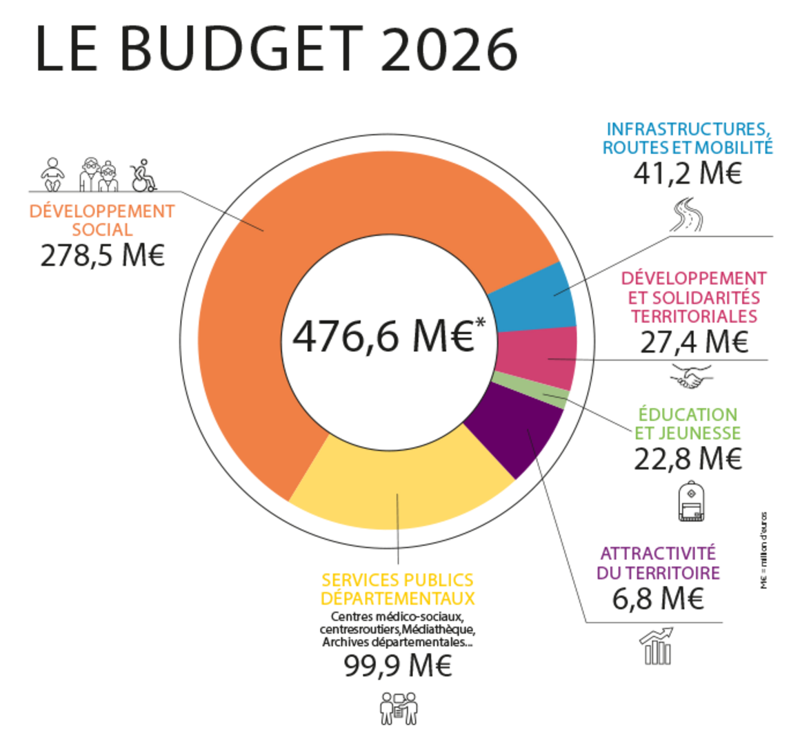 Ce Budget 2026 traduit ainsi des priorités claires, au plus près des habitants. La solidarité demeure le cœur de l’action départementale, avec un engagement fort en faveur des personnes âgées, des personnes en situation de handicap, de la protection de l’enfance et de l’insertion. L’égalité des chances guide les politiques éducatives, avec le maintien des moyens consacrés aux collèges, à la restauration scolaire, au numérique éducatif et à l’enseignement supérieur de proximité.